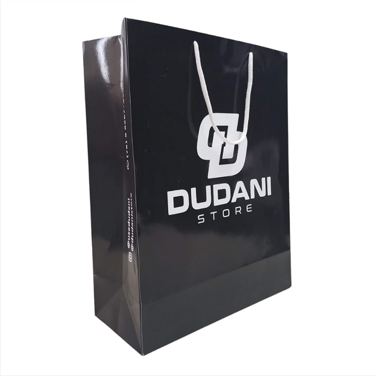 Material: Papel Duplex 190g, cordão nylon com ponteiras, ilhos, Laminação/plastificação Brilho ou fosco e reforço no fundo em cartão •Método de Impressão: Offset Medidas: M 20cm de largura x 28cm de altura x 12cm de base.